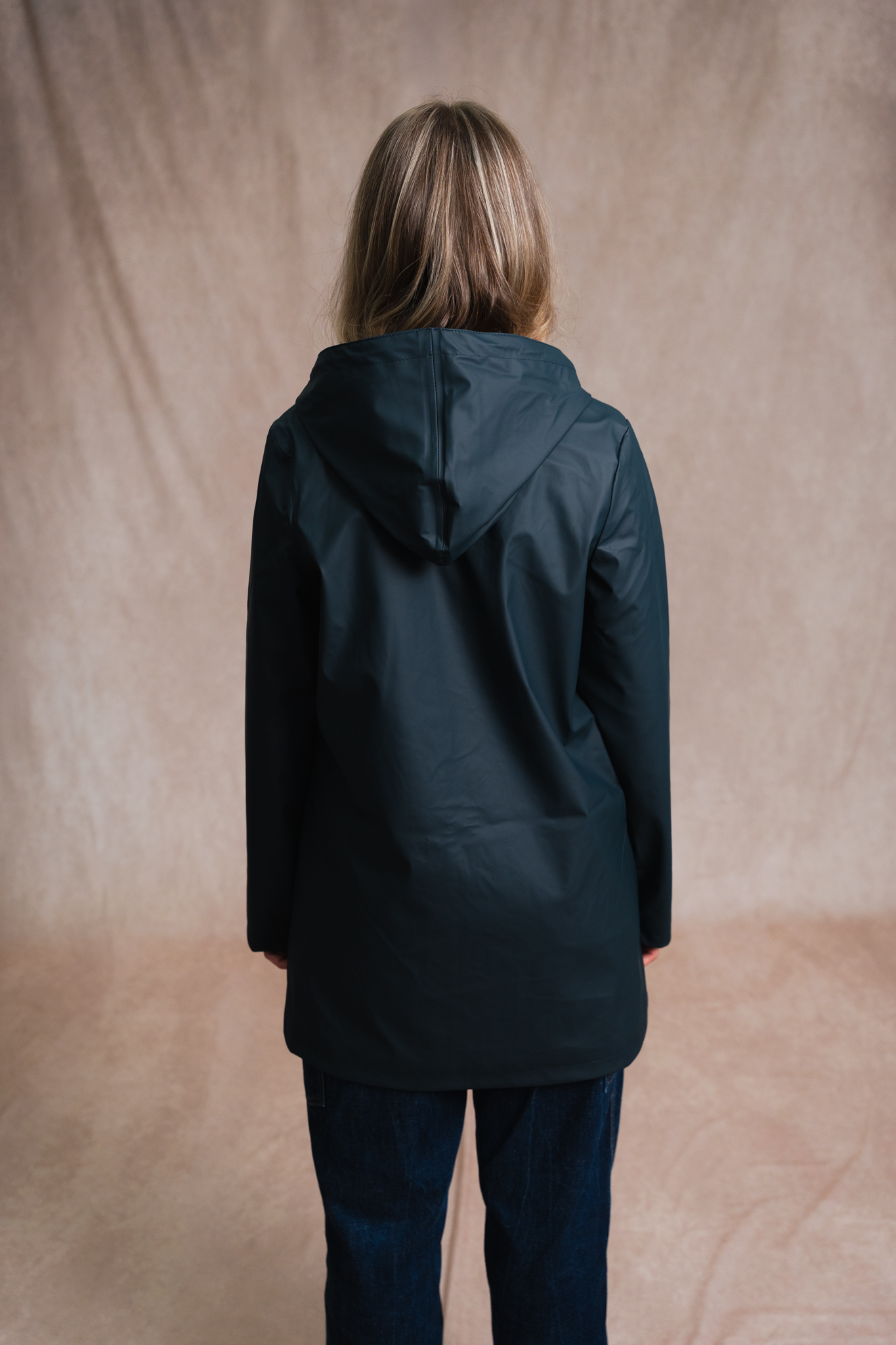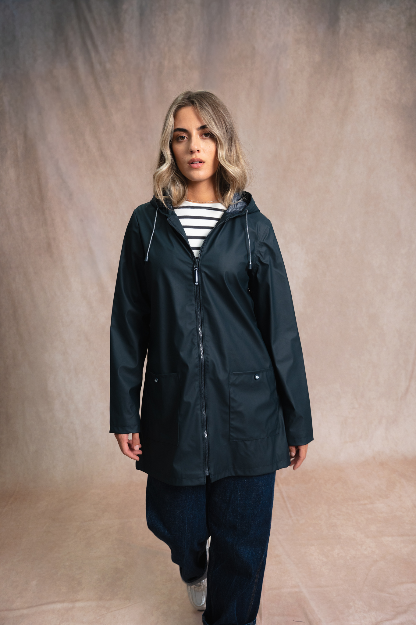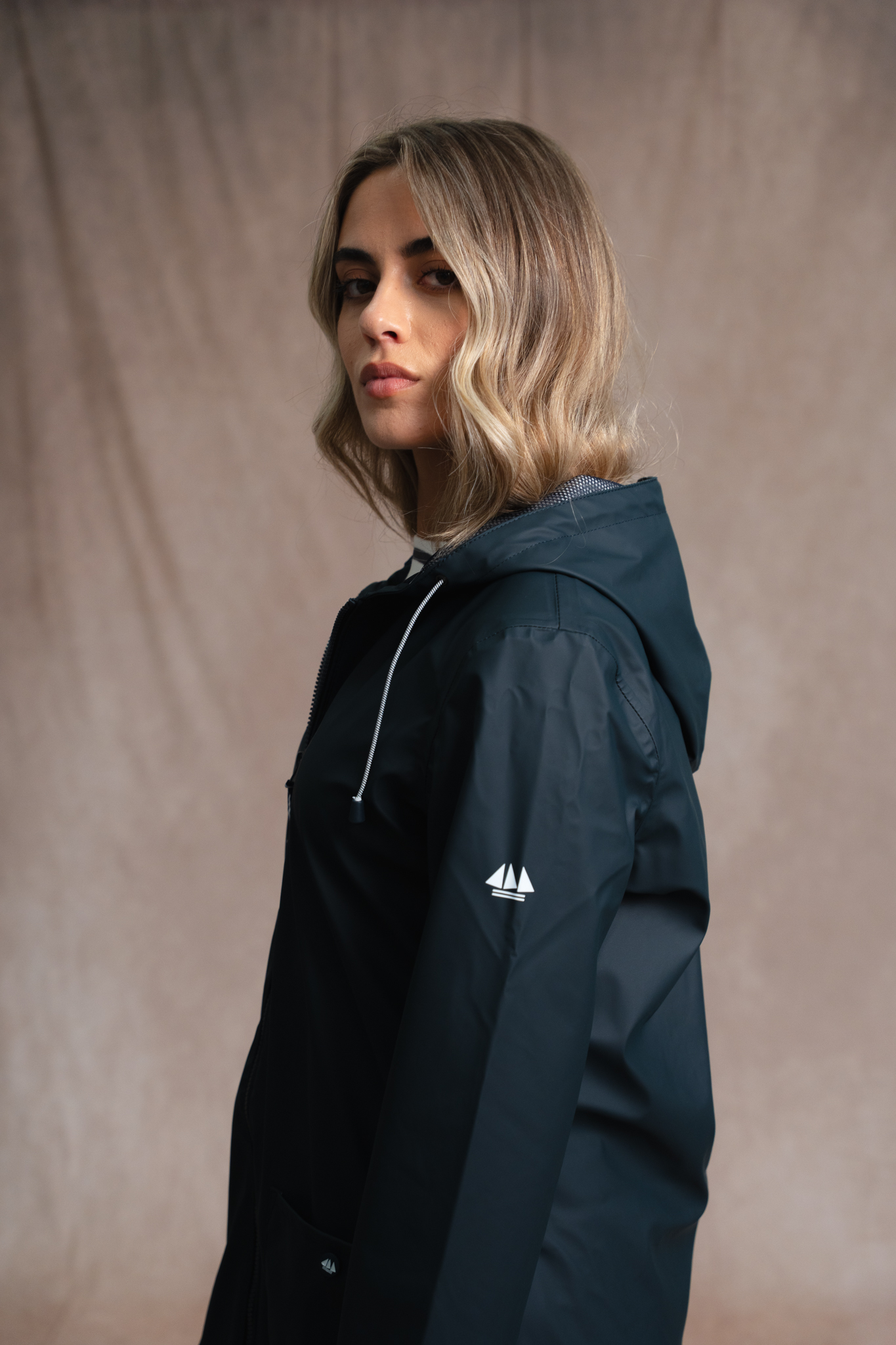 Simple et chic, le ciré Helena offre confort et protection grâce à sa doublure filet, sa capuche réglable et sa coupe droite. Un indispensable pour rester élégante même sous la pluie.