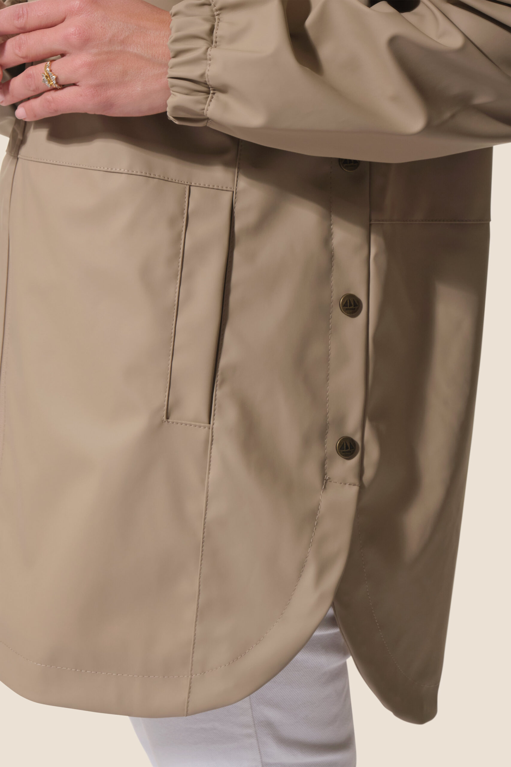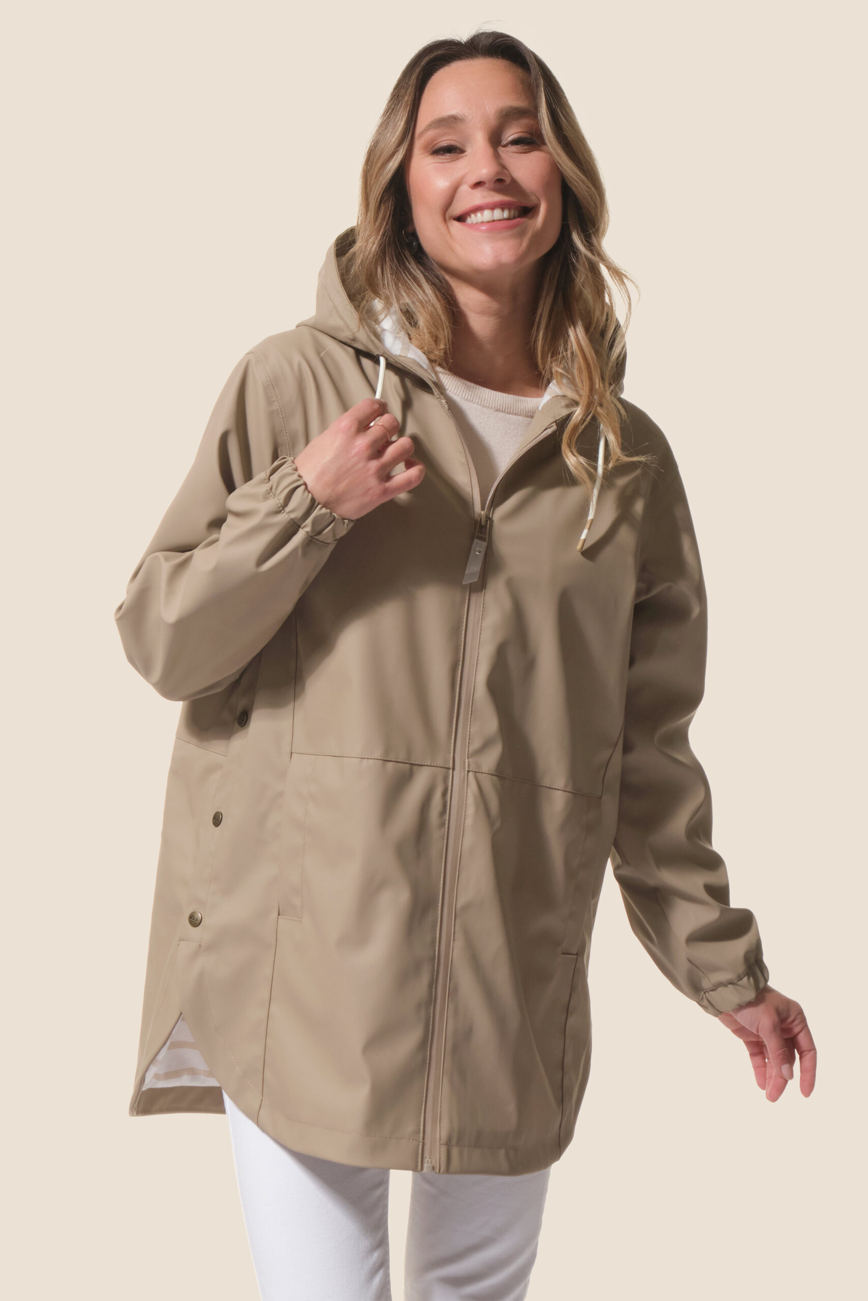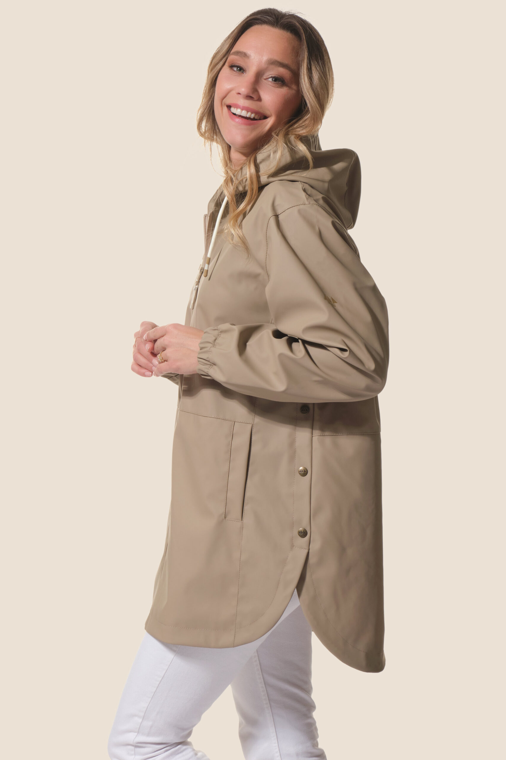 Confort, style et imperméabilité : le ciré Pauline séduit par sa coupe ample, sa doublure métallisée, sa capuche fantaisie et ses détails raffinés pour affronter la pluie avec élégance.