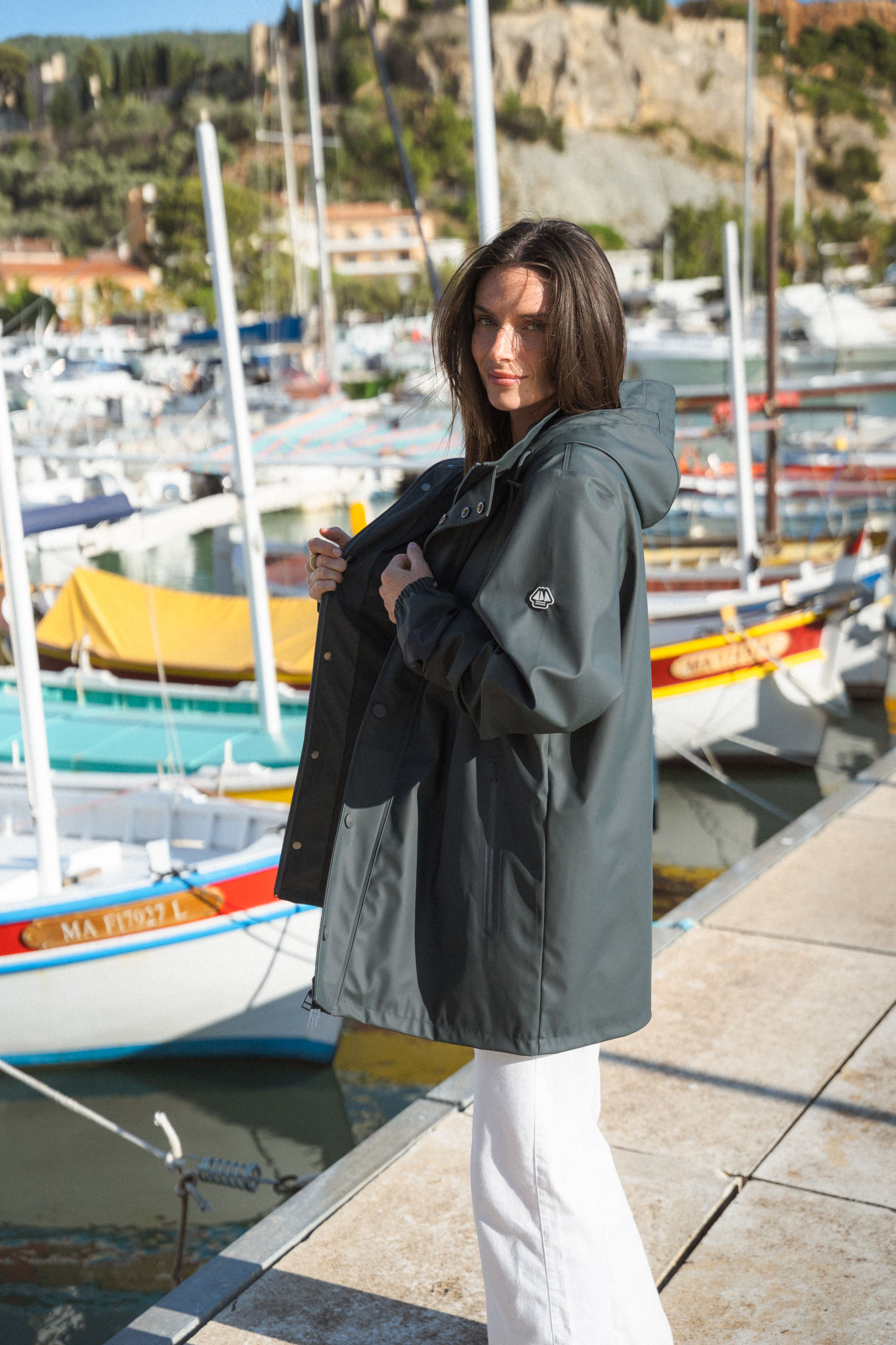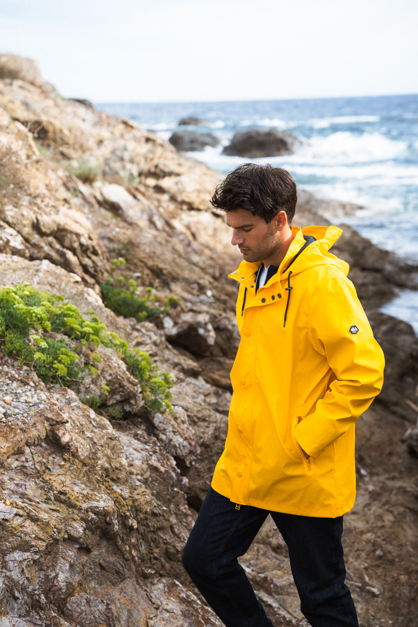 Le ciré Nomade est un imperméable court mixte à la coupe droite, conçu pour une protection optimale contre la pluie. Doté d’une capuche avec visière, de poches zippées étanches et d’une fermeture zippée double curseur sous patte à boutons-pression, il allie fonctionnalité et style. Ses coutures soudées et son imperméabilité 8000 mm garantissent une excellente résistance aux intempéries. ☔