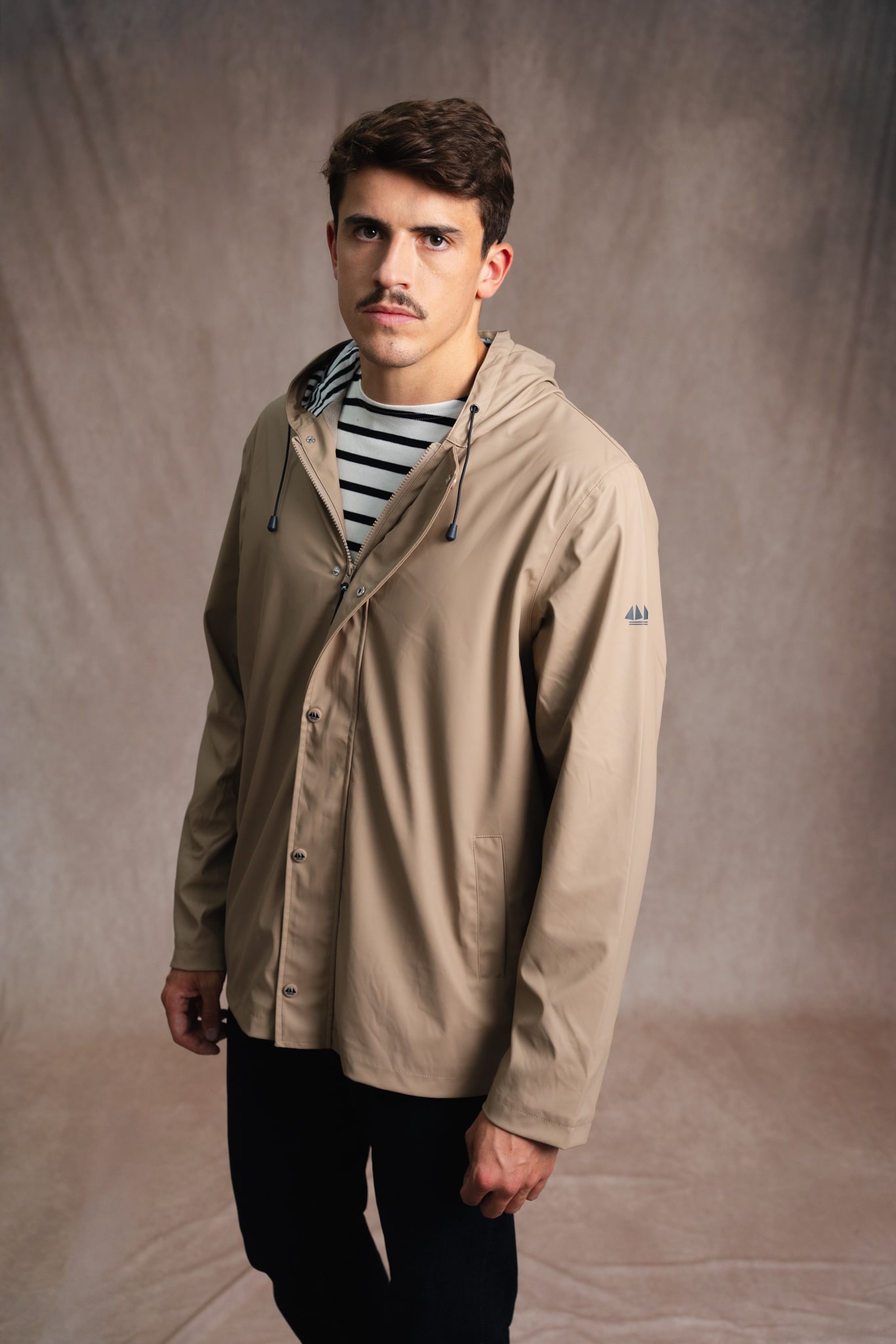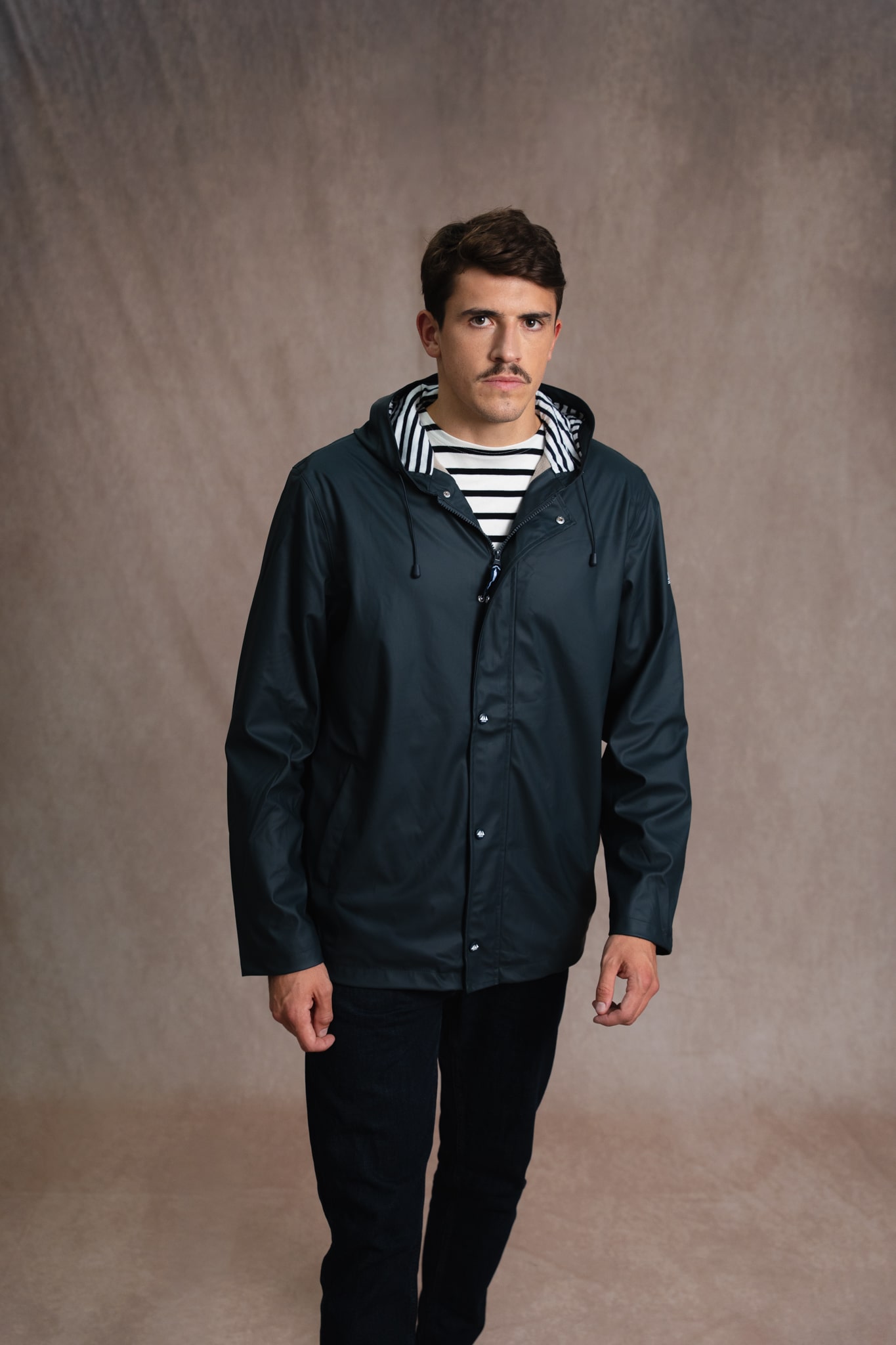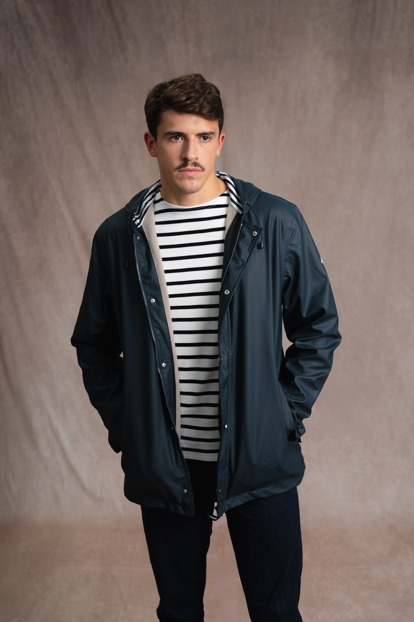 Ce ciré court pour homme allie protection et chaleur. Sa coupe droite, sa doublure polaire et sa capuche doublée jersey avec lien de serrage offrent confort et praticité.