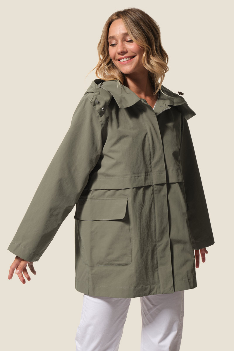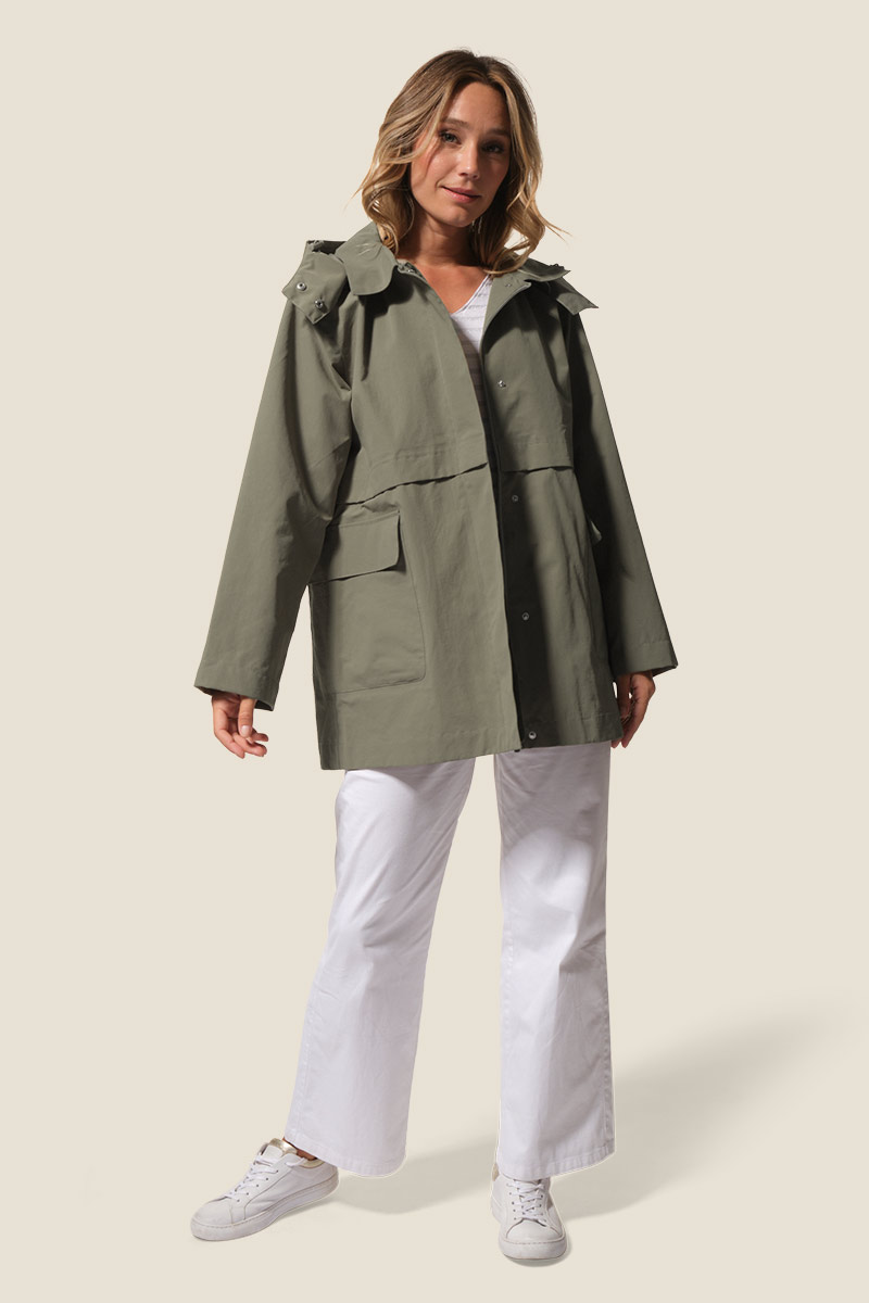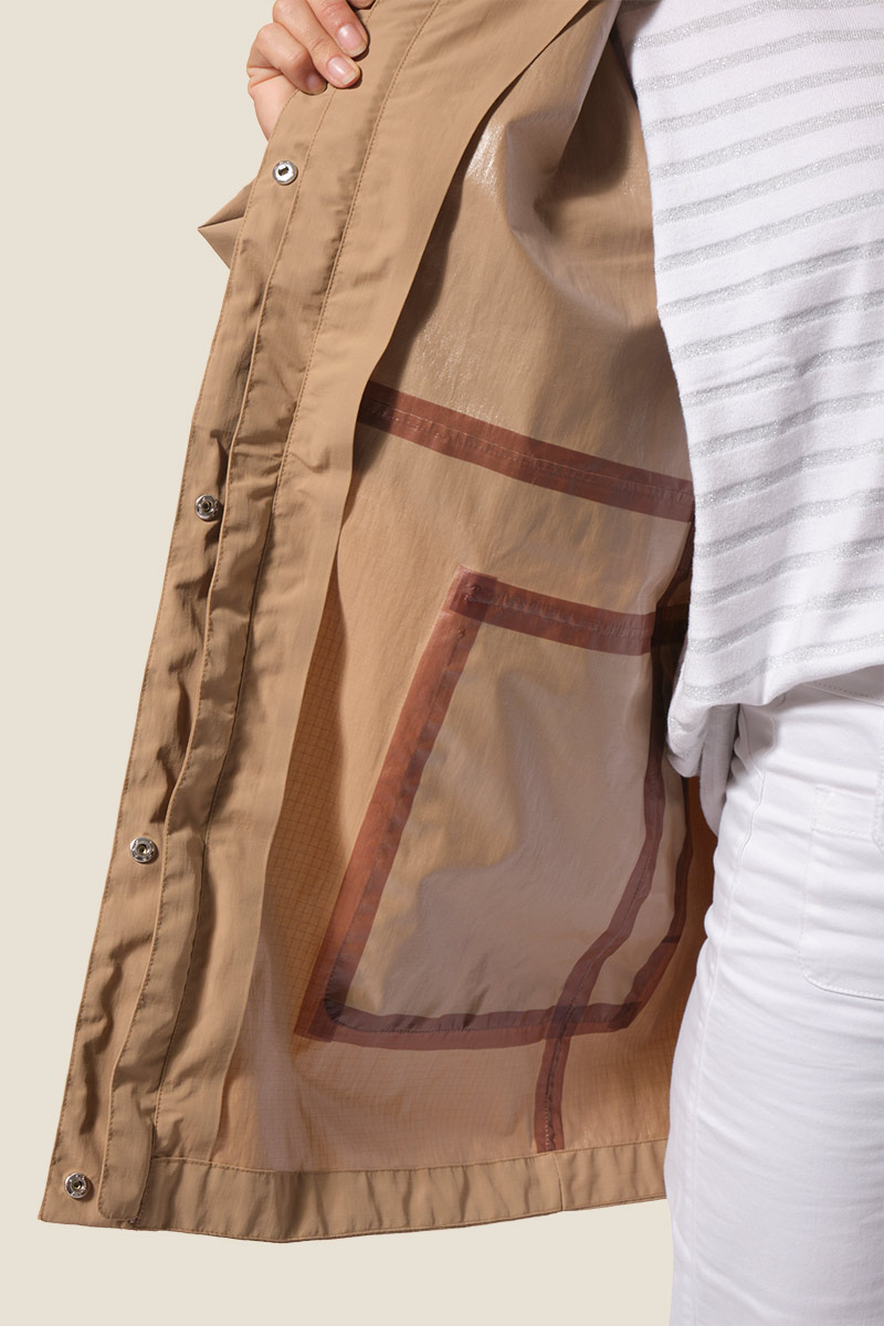 - Coupe-vent mi-long femme en ripstop, non doublé.