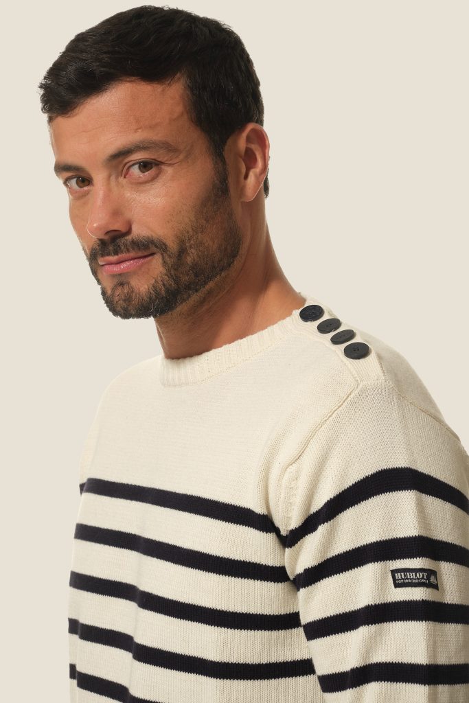 - Encolure rond et patte de boutonnage sur l’épaule gauche