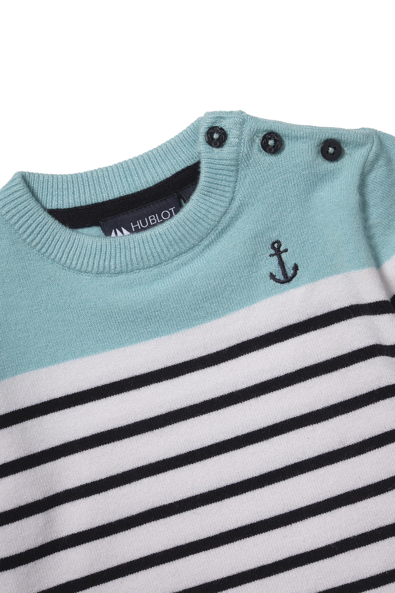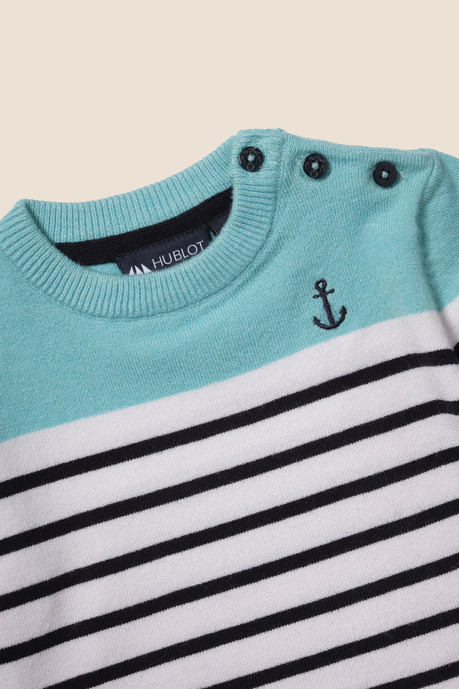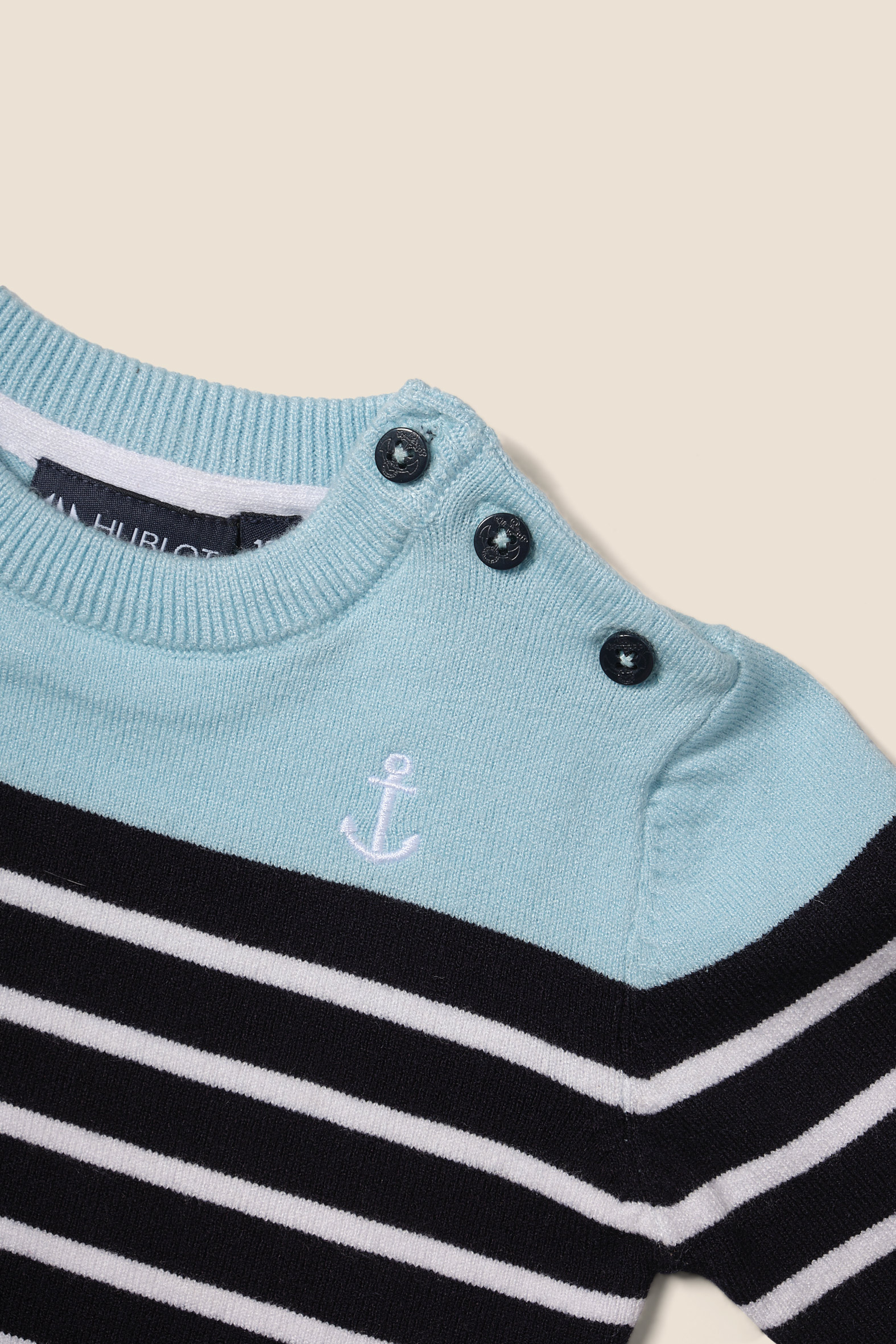- Encolure ronde avec une patte et boutons sur l’épaule gauche